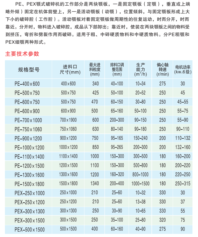 【產(chǎn)品簡(jiǎn)介】鄂破式破碎機(jī)是出現(xiàn)較早的破碎設(shè)備,因其構(gòu)造簡(jiǎn)單、堅(jiān)固、工作可靠、維護(hù)和檢修容易以及生產(chǎn)和建設(shè)費(fèi)用比較少,因此,直到現(xiàn)在仍然廣泛地在冶金、化工、建材、電力、交通等工業(yè)部門(mén)。(注:PE為粗顎式破碎機(jī),PEX為細(xì)顎式破碎機(jī)。)